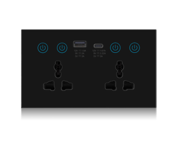 LangYeao - Tomada inteligente de parede com controle de energia universal WiFi de 147 mm, toque elétrico duplo, carregador rápido USB-C
